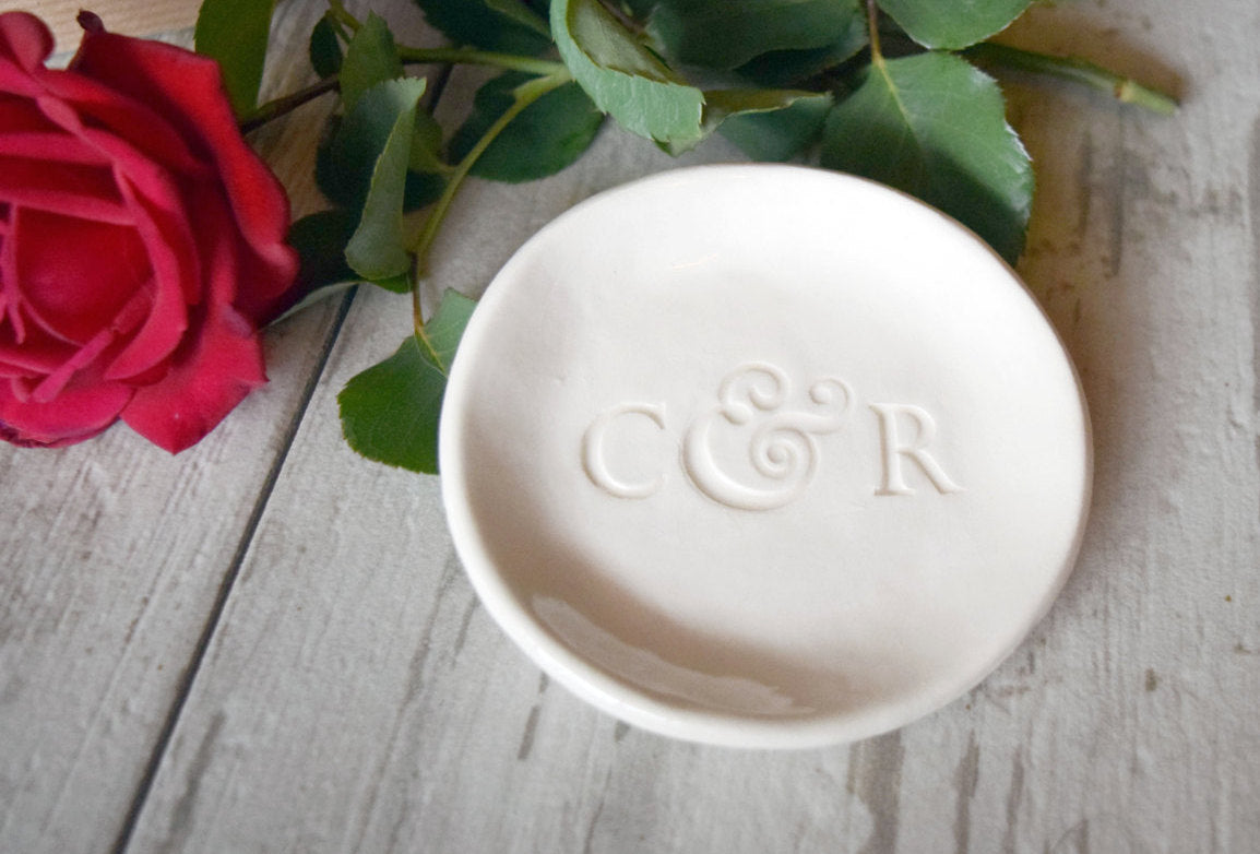 Monogram Wedding Ring Holder Personalized Anniversary Gift by Prima Pottery