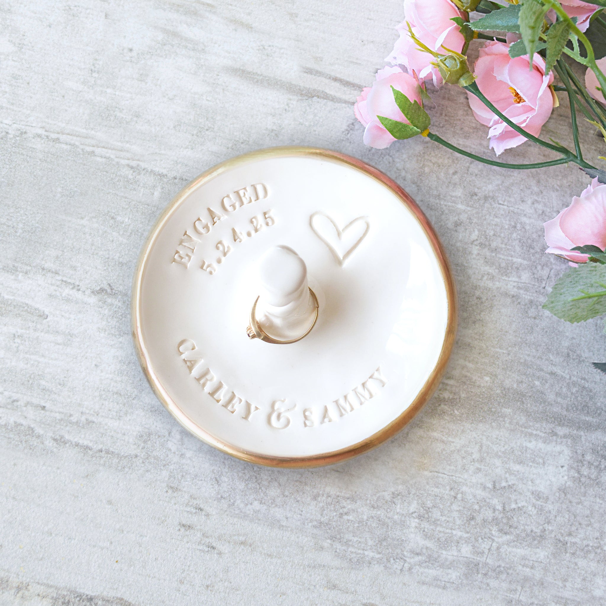 Engagement Ring Dish with Jewelry Post, Custom Names & Date